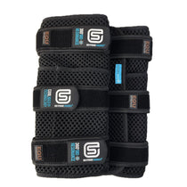 The Coolboots are designed with materials that provide cooling to the horse’s legs. Grooved fibres quickly wick warm moisture away from the skin to the fabric's outer surface, increasing the surface area for rapid evaporation. This process removes perspiration and prevents heat buildup, helping to regulate the horses body temperature more effectively than standard cotton fabrics. Coupled with this, other materials used in the Coolboot help fully absorb and retain cold water for extended periods of time. The outcome of this is a feeling of coolness, for longer.
